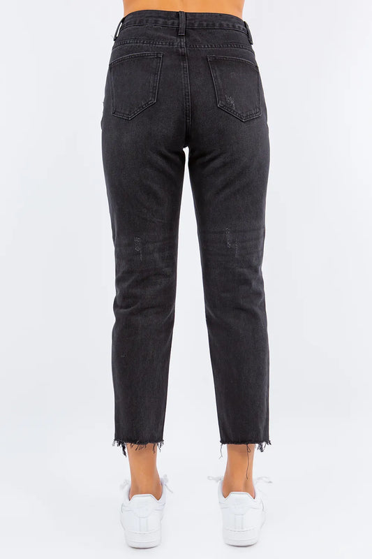 American Bazi High Waist Distressed Cropped Straight Jeans