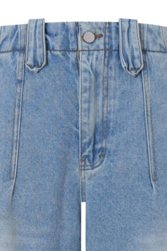 • Men's High-Waisted Wide Leg Denim Shorts Blue - Fashorio