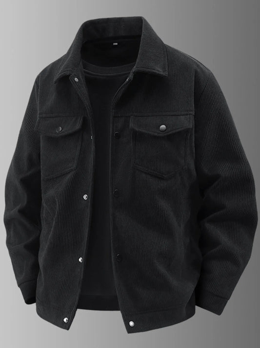 Men's Plus Size Corduroy Button-Up Jacket with Chest Pockets