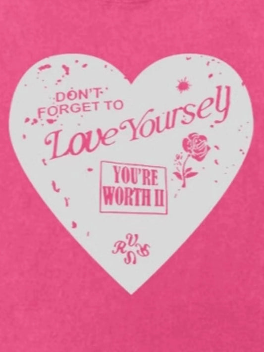 • Heart Round Neck Short Sleeve T-Shirt Rose Red - Fashorio