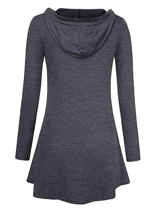 Longline Hooded Zip-Up Cardigan Coat with Flared Hem
