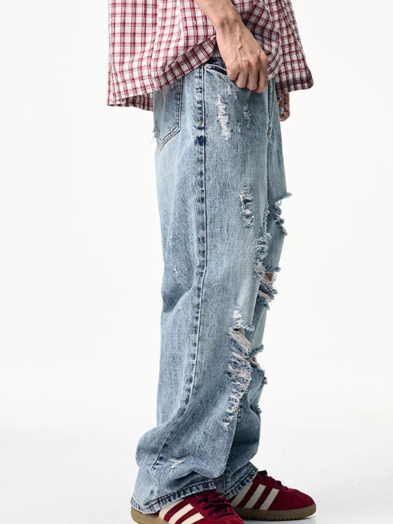 Upgrade your denim collection with these Men’s Distressed Wide Leg Jeans, a modern take on classic streetwear. Designed for both comfort and style, the wide leg cut delivers a relaxed fit, while the distressed and washed finish adds a bold, lived-in edge.