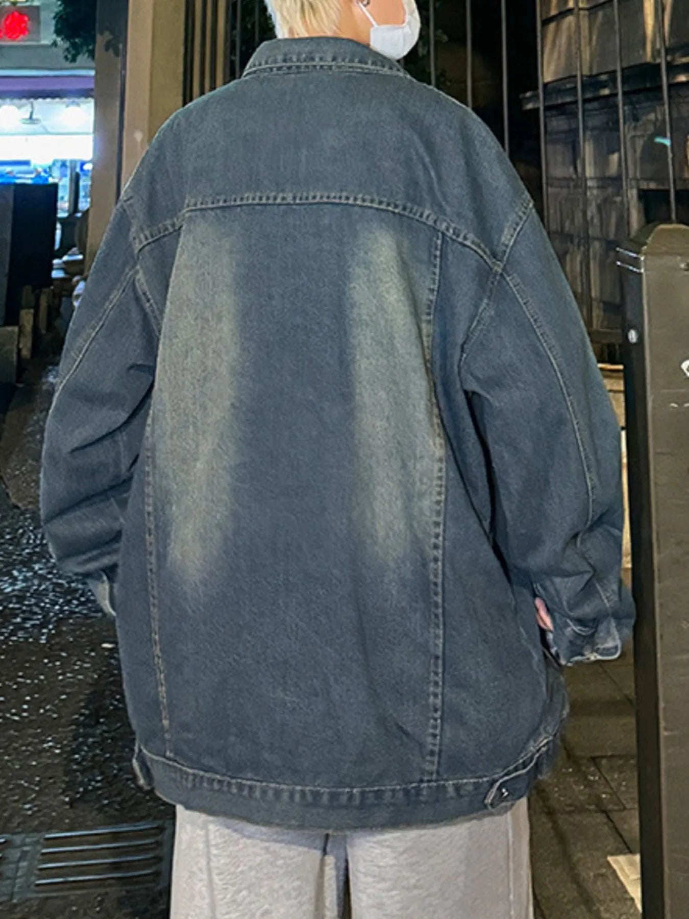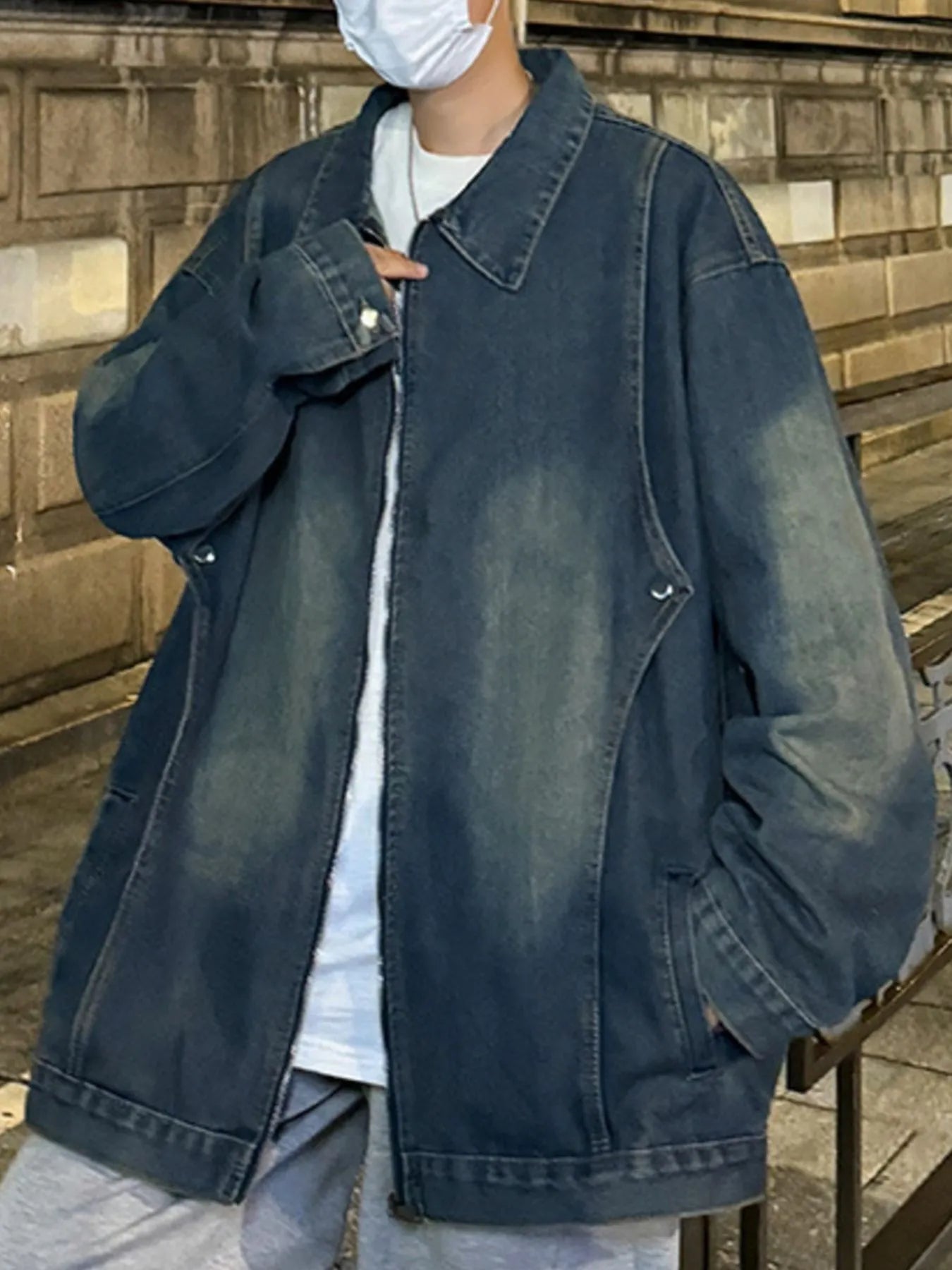 Men's Full Size Zip Up Long Sleeve Denim Jacket Plus Size