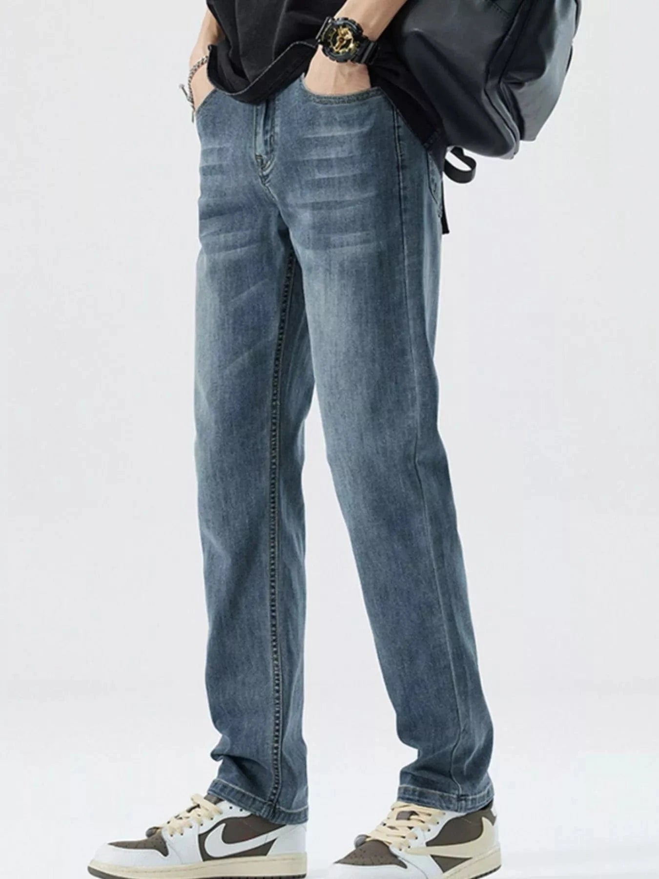 Men’s Slim Fit Stretch Jeans – Washed Denim Modern Style