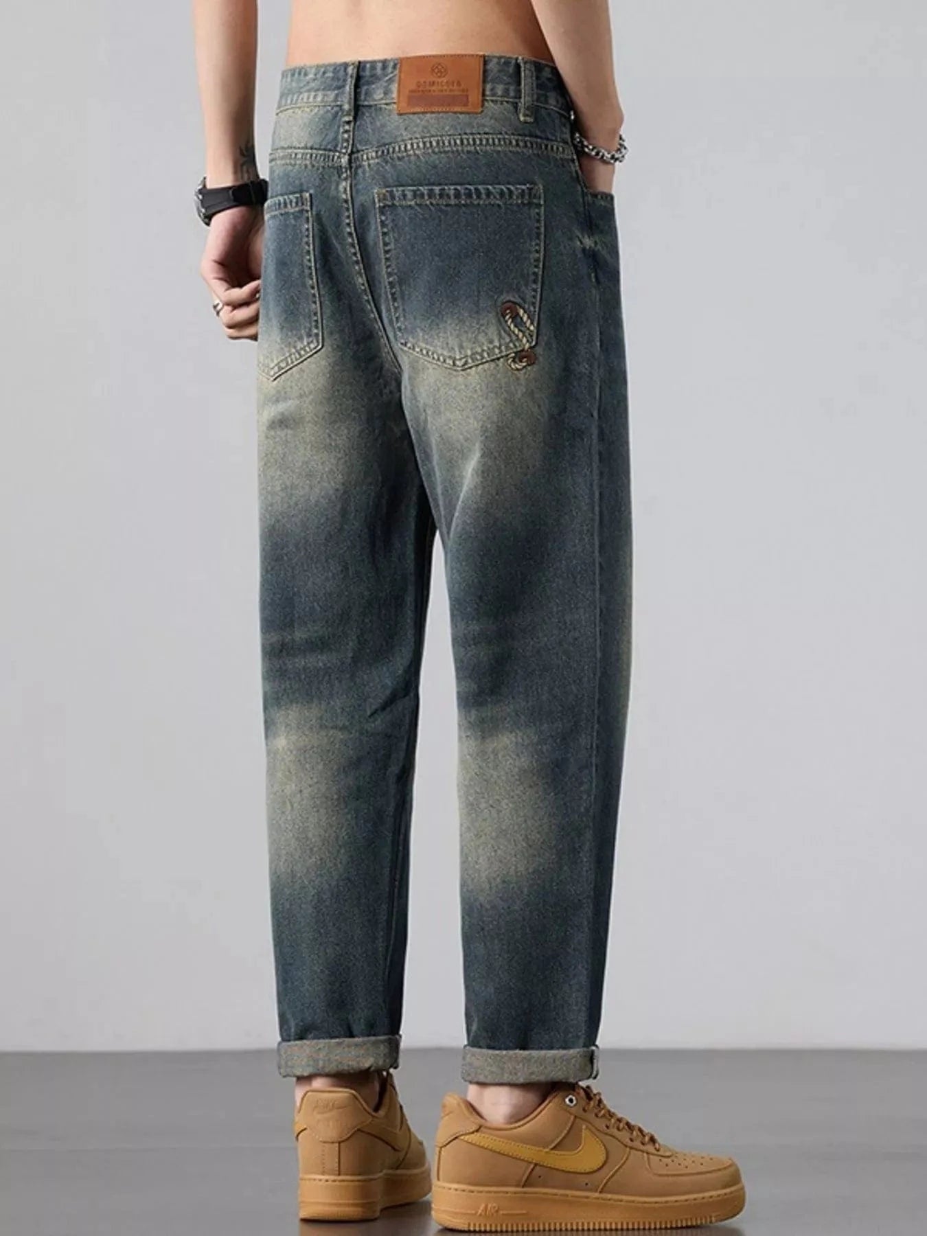 Men’s Straight Leg Jeans – Washed Denim Classic Fit