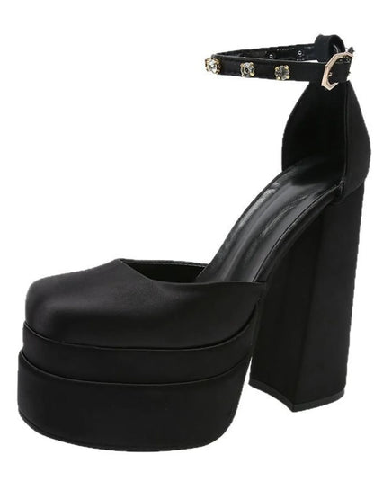Platform High Heel Ankle Strap Pumps