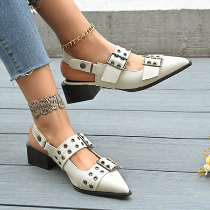 Point Toe Block Heels Slingback Pumps