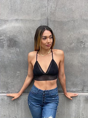 Zenana Full Size Textured Spaghetti Strap Bralette in Black